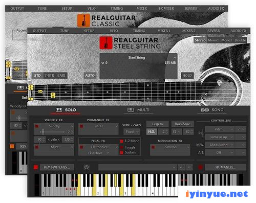 MusicLab - RealGuitar 是一种基于样本的专用虚拟乐器,采用创新方法对吉他声音进行建模,并在键盘上演奏吉他声部。它可以作为 VSTi 与任何支持 VST 2.0、DXi 的主机应用程序一起使用,也可以作为独立版本使用。